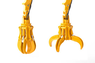 The Caterpillar 245 Excavator, produced from 1974 to 1988, was powered by the six cylinder turbocharged, 3406 engine with 325 flywheel horsepower. Due to its extreme versatility, this machine had many specialized versions created for specific uses. The grapple was one of the best examples of these modifications, used for a wide range of applications such as handling shredded scrap, long structural beams or car bodies, handling waste at recycling and transfer stations and handling rocks at construction sites. The four tines of the grapple were made of low-alloy steel with hardened tips. All pins, cylinders, bearings and hoses were hardened and armored for heavy duty use.