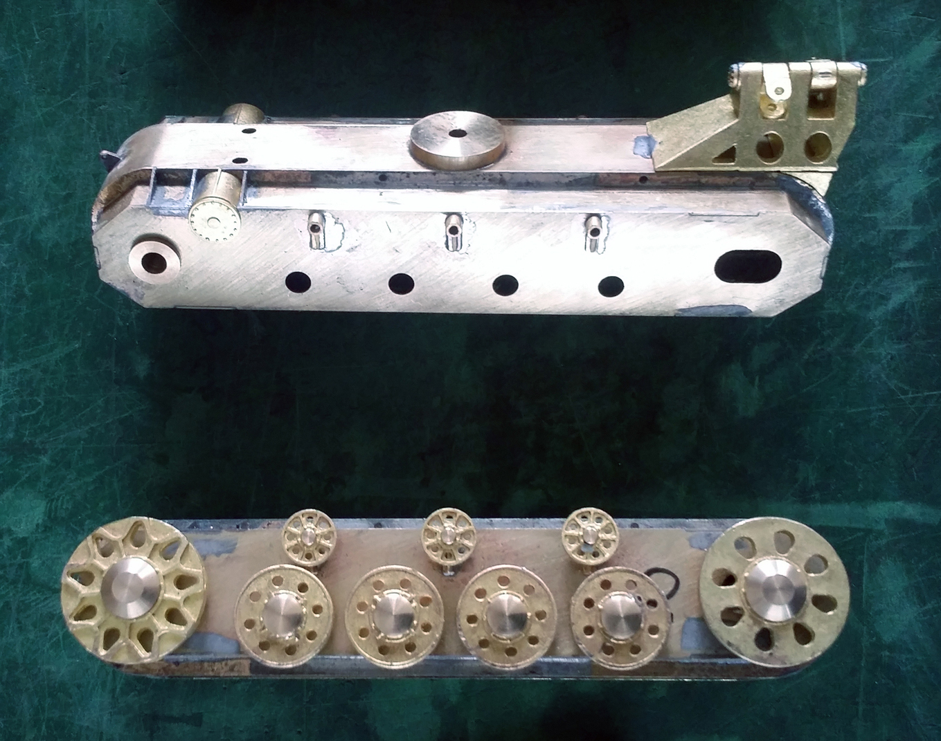 The first prototype models currently have completed truck assemblies, dipper & bucket, swing gear, and the bottom of the housing, with hundreds more pieces of cast, etched, and machined brass to be assembled before the model is complete. The model will be finished with period correct colors, as well as both Bucyrus-Erie and Pittsburg & Midway markings.