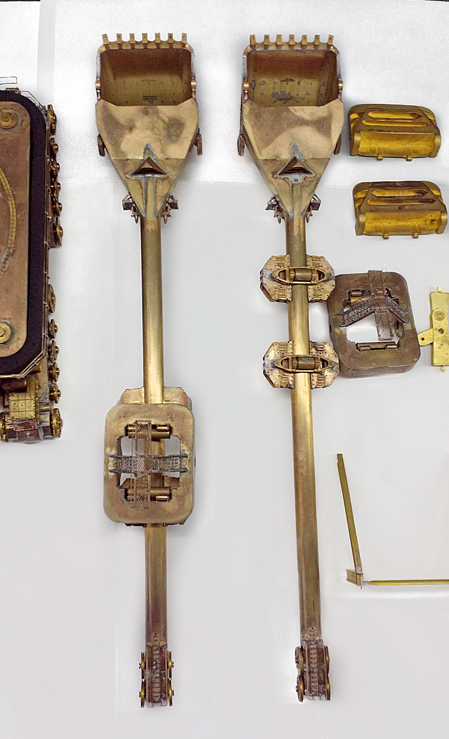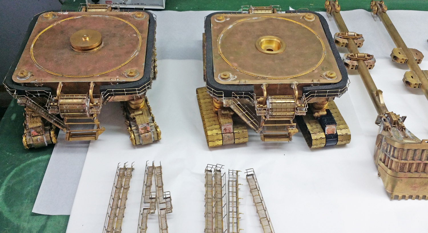 Our model maker has been sending us progress photos of the Bucyrus-Erie 1850-B “Brutus” model in 1:87 scale brass, and we just had to share them with our collectors. From the photos, you can get an idea for just how many parts go into each of these models and the level of intricate detailing required during assembly. As you can tell, these brass models are painstakingly hand-assembled by extremely skilled individuals; they do not magically fall out of a mold in one piece ready for display.